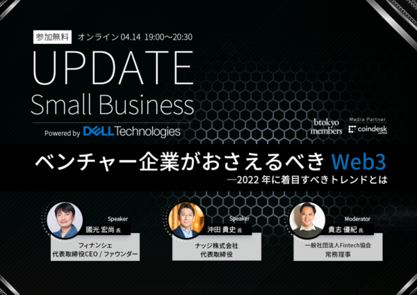 「UPDATE Small Business」では、テクノロジーの最先端の世界が広がるWeb3の「未来」を伝えるオンラインイベント開催をはじめとして、デジタル化の一層の拡大に挑戦するベンチャー企業を支援しています。
